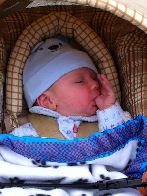 Looks like we may have another thumb sucker. Hopefully Z doesn't keep at it as long as Connor, who still sucks his thumb at 6 years old. Connor will only suck his right thumb and so far Z has only sucked his left thumb.
